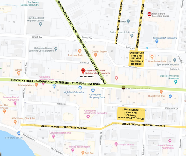 Our Caloundra office is conveniently located for residents of Caloundra, Moffat Beach, Kings Beach, Shelly Beach, Golden Beach, Baringa, Currimundi, Little Mountain and surrounding areas. We provide expert legal and accounting assistance for personal or professional matters.